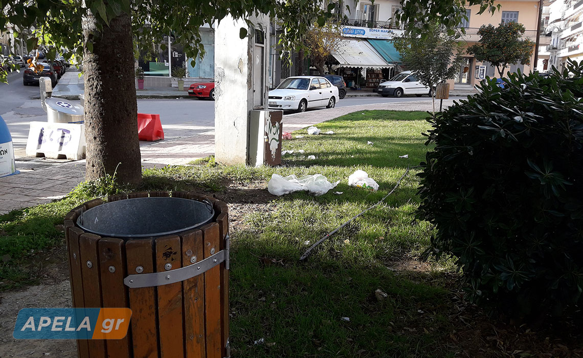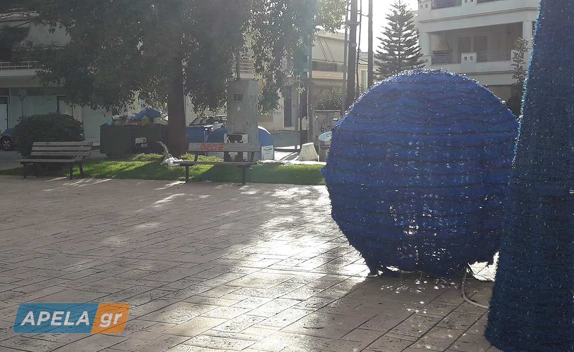 Στολίδια μαζί με… σκουπίδια στην πλατεία Νέου Κόσμου Σπάρτης