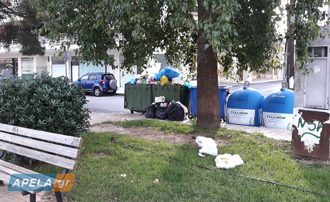 Σκόρπια απορρίμματα και υπερχειλισμένοι κάδοι