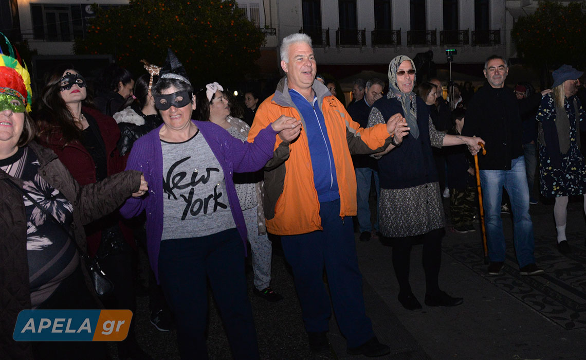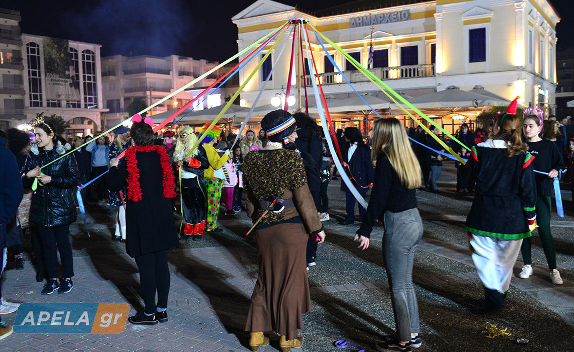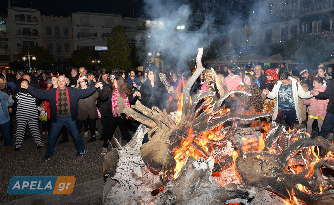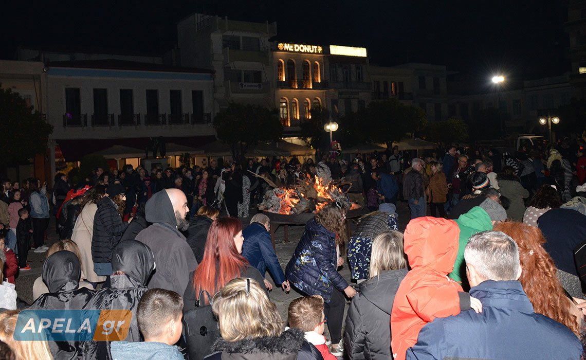 Σουβλάκια, κρασί, ζωντανή μουσική, μασκαράδες, γαϊτανάκια, χορούς αλλά και μια μεγάλη φωτιά, περιελάμβανε η αποκριάτικη εκδήλωση του Δήμου Σπάρτης, η οποία έλαβε χώρα στην κεντρική πλατεία της πόλης, το βράδυ της Κυριακής 23 Φεβρουαρίου.