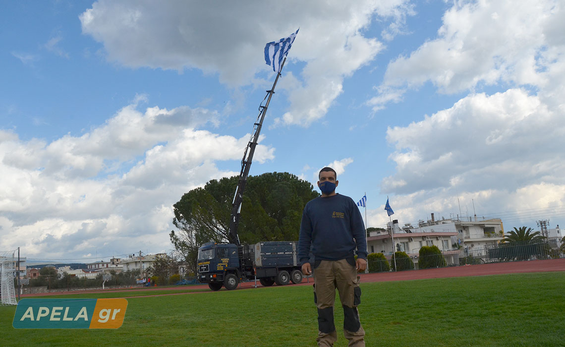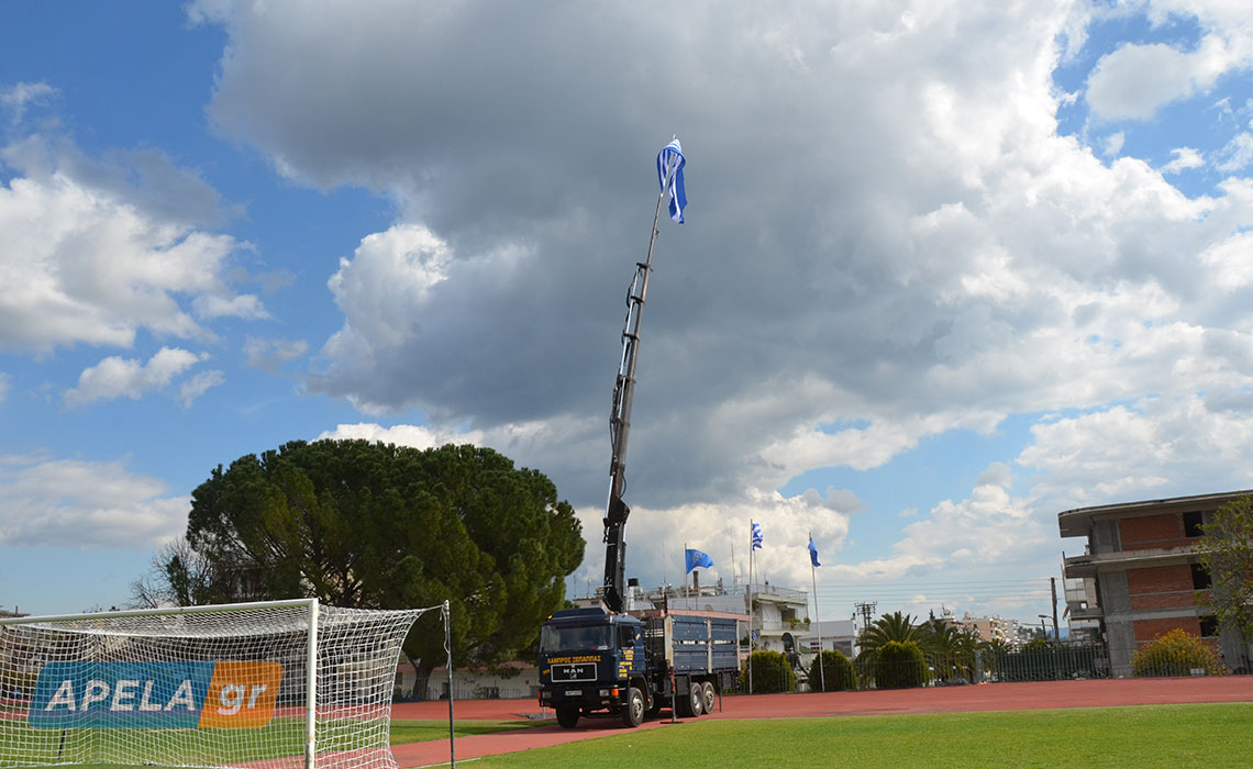 Μια μεγάλη ελληνική σημαία σε ύψος 25μ. στο Δημοτικό Στάδιο Σπάρτης!