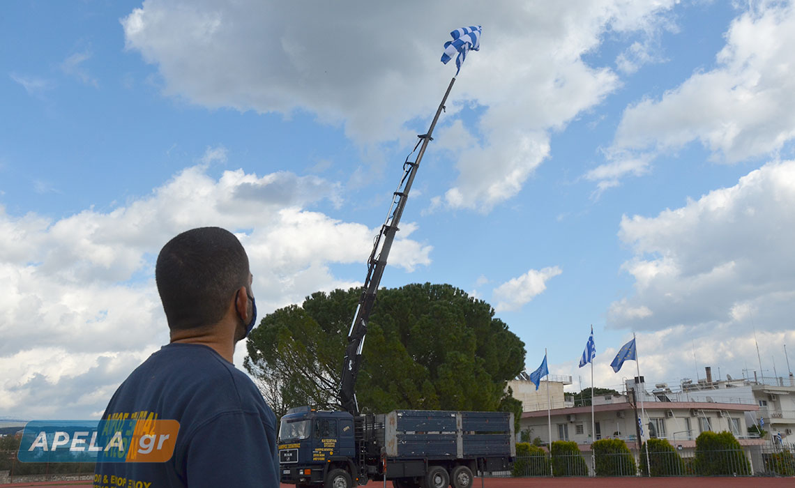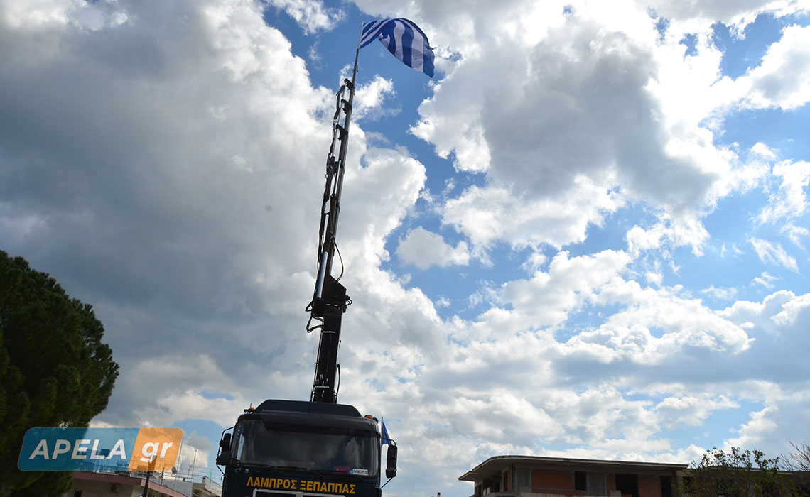 Σημειώνεται πως η σημαία έχει διαστάσεις 6μ. x 4.30μ. και θα είναι ανεβασμένη με τον γερανό στα 25 μέτρα ύψος.