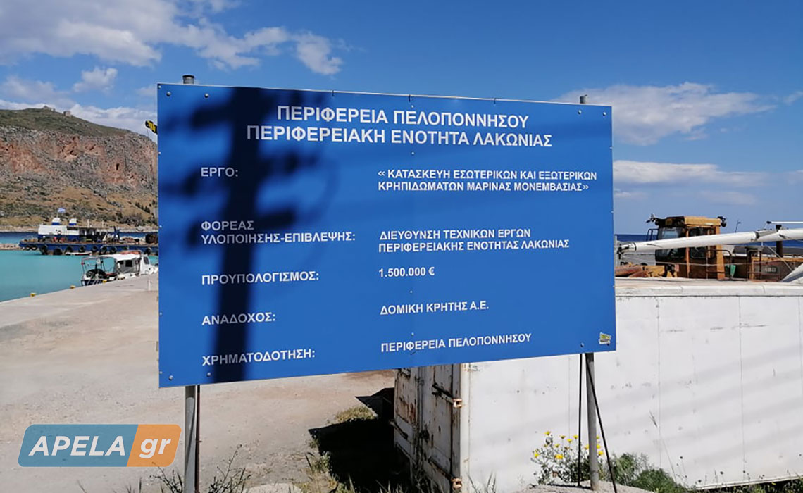 Αντικείμενο της συνάντησης ήταν τα έργα που υλοποιεί η Περιφέρεια Πελοποννήσου στη Μαρίνα της Μονεμβασίας και ο προγραμματισμός νέων έργων που πρέπει να υλοποιηθούν άμεσα και περιλαμβάνουν την διαμόρφωση του χερσαίου τμήματος, την κατασκευή νέας κάθετης προβλήτας και την απαραίτητη θωράκιση τμημάτων της μαρίνας. Συζητήθηκε επίσης η βελτίωση του οδικού τμήματος Άγιος Φωκάς - Μονεμβάσια, για το οποίο επίκειται δημοπράτηση της μελέτης όπου το προσεχές χρονικό διάστημα θα υπάρξει συνεργασία Περιφέρειας και Δήμου.