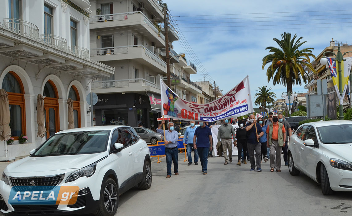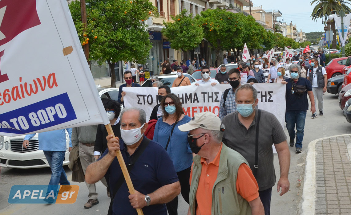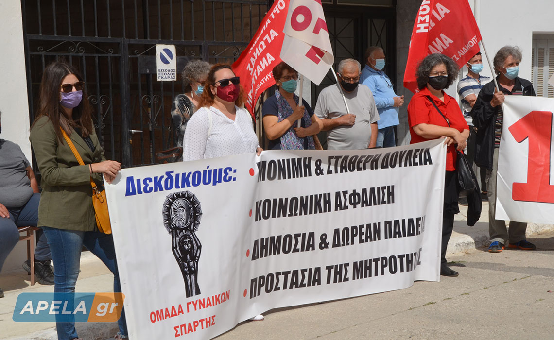 Απεργιακή κινητοποίηση με τη συμμετοχή λακωνικών συλλόγων - σωματείων - φορέων πραγματοποιήθηκε στη Σπάρτη, το πρωί της Πέμπτης 6 Μαΐου.