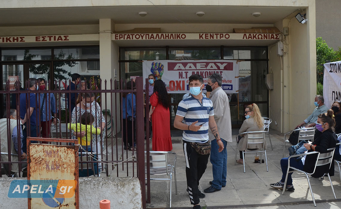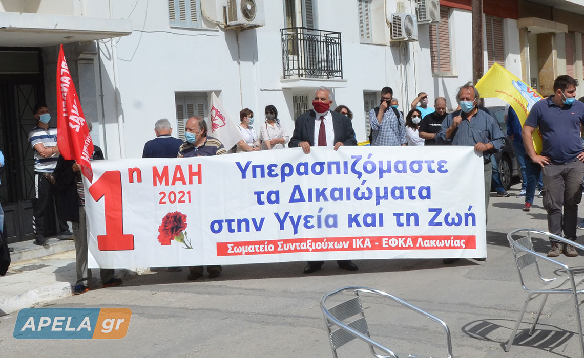 Οι συμμετέχοντες, τιμώντας την Εργατική Πρωτομαγιά, συγκεντρώθηκαν με πανό και σημαίες στον προαύλιο χώρο του Εργατικού Κέντρου Λακωνίας, το οποίο είχε κηρύξει «24ωρη παλλακωνική απεργία ενάντια στο υπό κατάθεση εργασιακό νομοσχέδιο» και όλοι μαζί, έστειλαν το δικό τους ηχηρό μήνυμα προς πάσα κατεύθυνση.