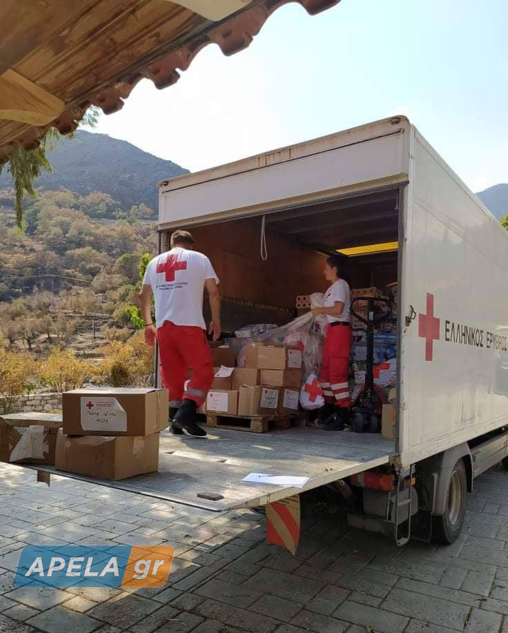 Συγκεκριμένα, όπως σημειώνεται στη σχετική ανακοίνωση, «το διήμερο 16-17 Αυγούστου, κατόπιν εντολής του Προέδρου του Ελληνικού Ερυθρού Σταυρού Dr. Αντώνιου Αυγερινού, παραδόθηκαν με οχήματα του Ε.Ε.Σ. περισσότεροι από 20 τόνοι ανθρωπιστικής βοήθειας σε χωριά και κοινότητες της Μάνης (Μυρσίνη, Μαράθεα, Αγ. Βασίλειος, Πλάτανος, Λυγερέα, Κονάκια) και της Γορτυνίας (Λιόδωρα, Λιβαδάκι, Αγ. Ιωάννης). Μάλιστα, το προσωπικό και οι εθελοντές του Ε.Ε.Σ πραγματοποίησαν τις διανομές ανθρωπιστικού υλικού (νερά, τρόφιμα, είδη πρώτης ανάγκης, ζωοτροφές κ.α.) από πόρτα σε πόρτα ώστε κανένας συμπολίτης μας να μην μείνει μόνος του αυτή τη δύσκολη στιγμή».