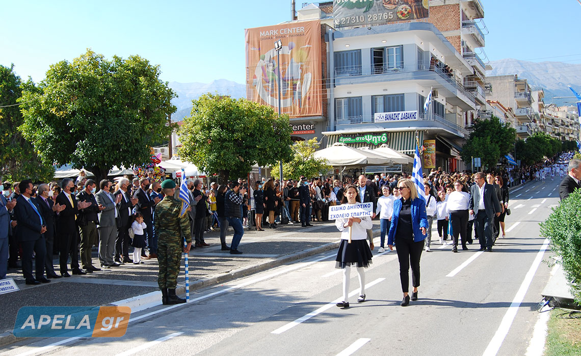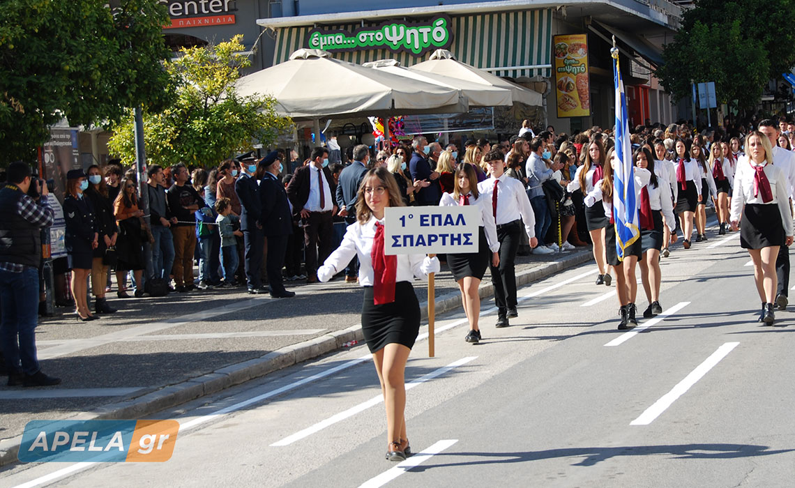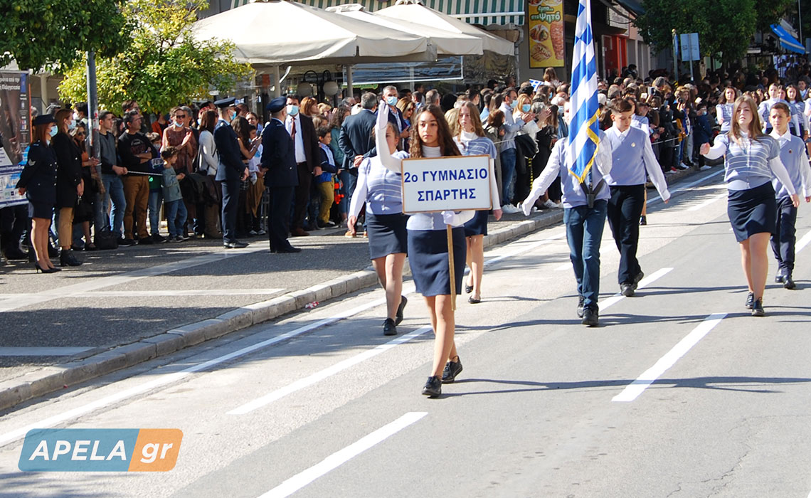 Την Εθνική Επέτειο της 28ης Οκτωβρίου 1940 τίμησε η Σπάρτη με την καθιερωμένη παρέλαση στην οδό Λυκούργου και τον κόσμο να χειροκροτεί θερμά τη νεολαία της πόλης.