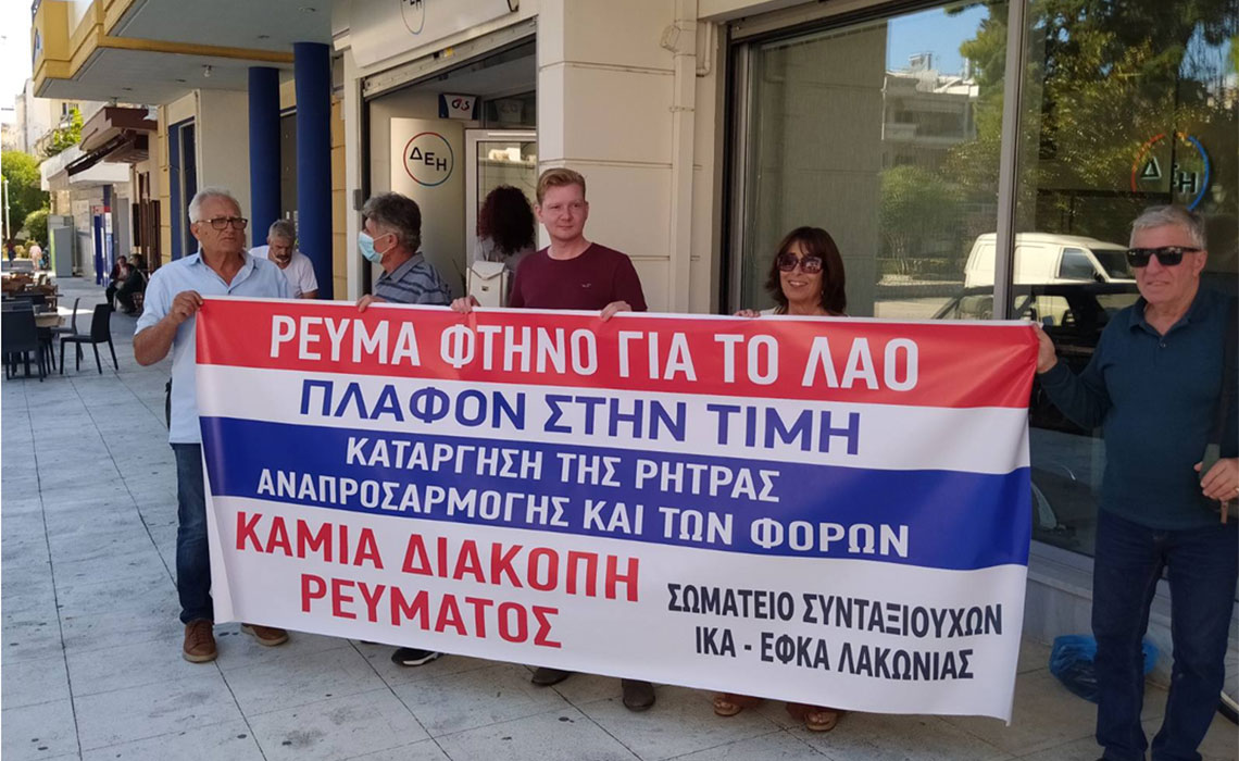 Αγρότες και συνταξιούχοι διαμαρτυρήθηκαν έξω από τη ΔΕΗ Σπάρτης